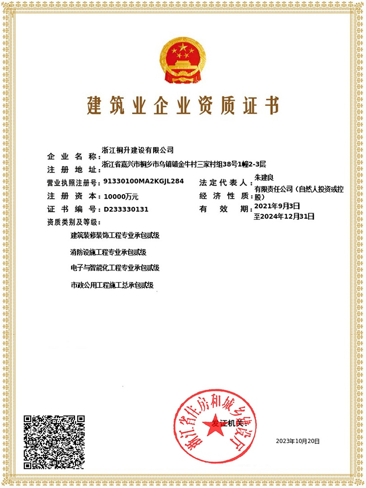 浙江桐升建設有限公司,坐落于素有“絲綢之府、魚米之鄉”著稱的杭嘉湖平原境內—桐鄉。公司成立于2021年,是集房建總承包壹級、建筑裝修裝飾工程專業承包貳級、消防設施工程專業承包貳級、電子與智能化工程專業承包貳級、市政公用工程施工總承包貳級的綜合型建筑企業。公司注冊資本10000萬元,公司成立短短一年多時間以來,年施工總產值近7億元,從業人員近2000人,公司有各類建造師30余名,有職稱的工程技術和經濟管理人員50余名。